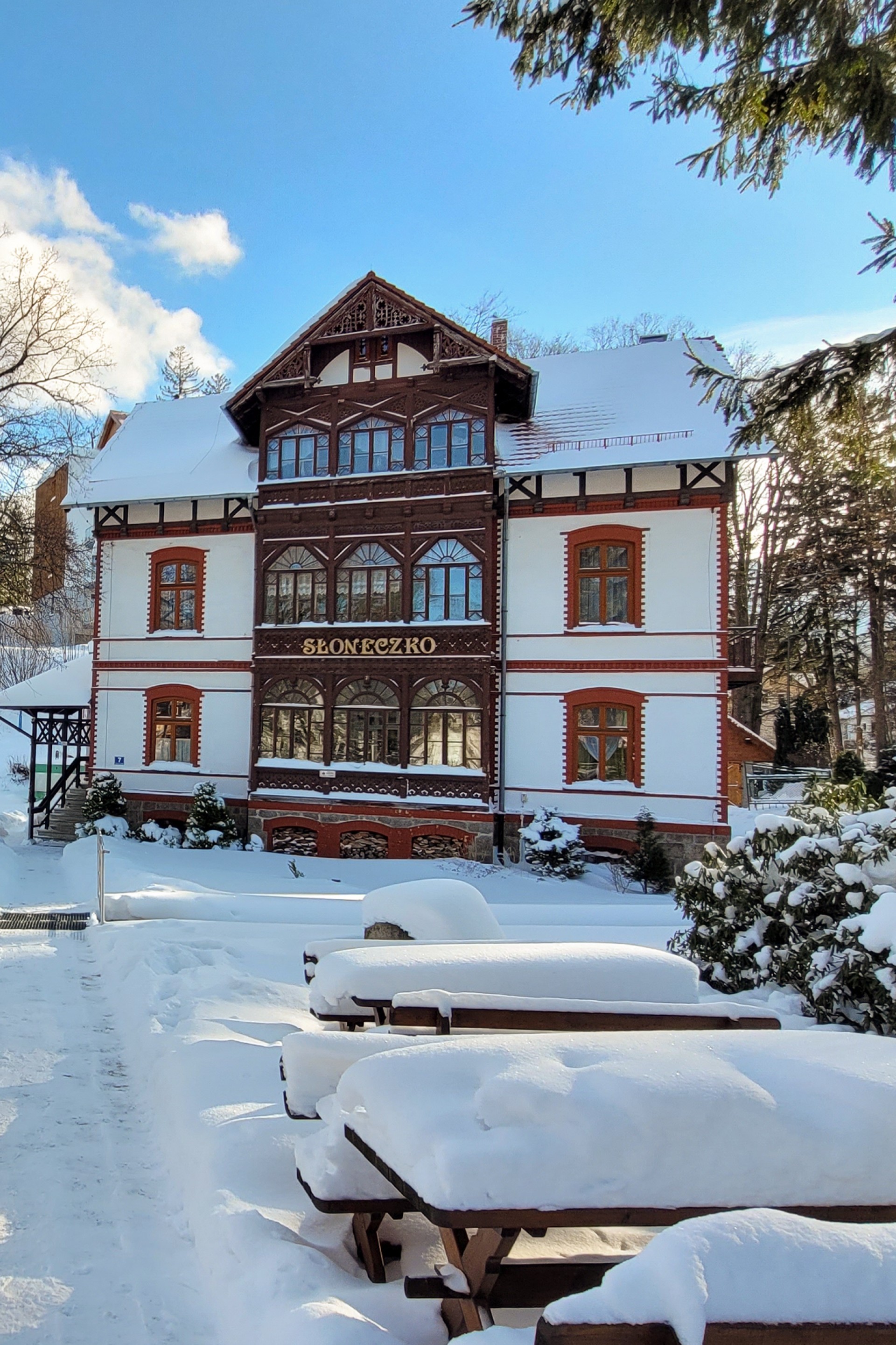 Kameralny zabytkowy obiekt, pięknie położony w centrum Szklarskiej Poręby. Nasz dom, jest idealną bazą wypadową na górskie wyprawy czy też jednodniowe wycieczki do Pragi, Drezna czy Skalnego Miasta. Znakomite miejsce na pobyt z dziećmi, nieopodal miejski plac zabaw, a w sezonie letnim na terenie