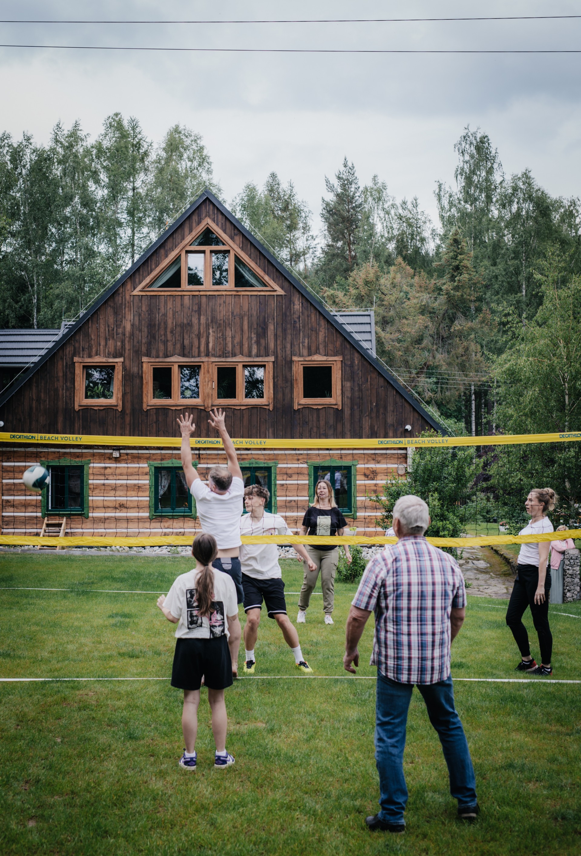 Ogromny zielony teren wokół domu, dużo przestrzeni na zewnętrzne aktywności. Mamy leżaki, duży taras, miejsce na grilla, boisko do piłki nożnej i siatkówki, huśtawkę w lesie. Są też sauna i jacuzzi z widokiem na las oraz ogrodzony parking.